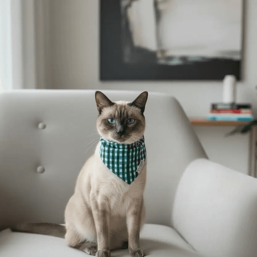 Gingham Green Cat Bandana + Small Dog